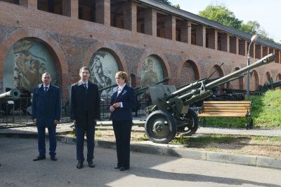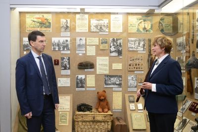 Заведующая военно-историческим отделом Смоленского государственного музея-заповедника Людмила Макаренкова провела для Игоря Щеголева экскурсию, рассказав о музее и экспонатах, которые бережно хранятся здесь.