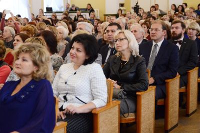 В продолжение торжества заместитель Губернатора поздравила педагогов, победивших в федеральном конкурсе на получение денежного поощрения, а также вручила ведомственные награды Министерства образования и науки РФ – в этом году звания «Почетный работник сферы образования Российской Федерации» удостоены 14 педагогов Смоленщины.