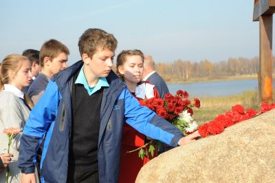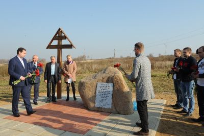 Обращаясь к участникам торжественного мероприятия, Губернатор особо подчеркнул: «Знаю, что благодаря усилиям районной власти на этой земле в свое время уже был создан достойный мемориальный комплекс в память о тех, кто погиб здесь в годы Великой Отечественной войны. Вместе с тем я не мог пройти мимо инициативы молодежи, студентов, не мог закрыть глаза на их начинание, и считаю правильным, что непосредственно на месте, где находился концлагерь, теперь тоже установлен мемориальный знак. Верю, что сюда будут приходить люди разных поколений и что народная тропа к этому святому месту не зарастет».