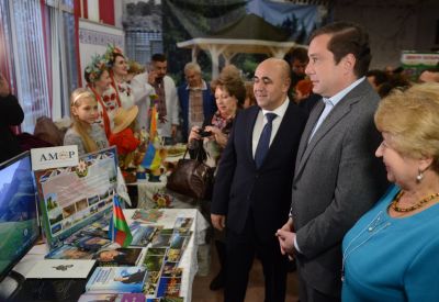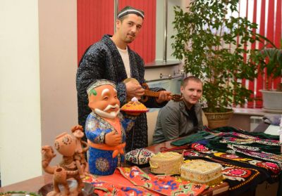 В рамках фестивальной программы Алексей Островский осмотрел выставку народного творчества национальных диаспор (русской, немецкой, латышской, польской, татарской, армянской, азербайджанской, узбекской и пр.), где были представлены работы декоративно-прикладного искусства, национальные костюмы, видеоролики об истории и традициях народов, книги, буклеты, газеты с информационными материалами о деятельности национальных объединений Смоленской области.