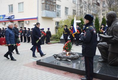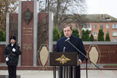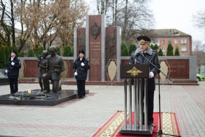 Собравшиеся почтили память сотрудников органов внутренних дел, отдавших свои жизни при исполнении служебного долга, Минутой молчания и возложили цветы и венки к Мемориалу.