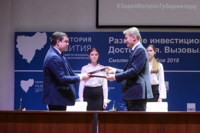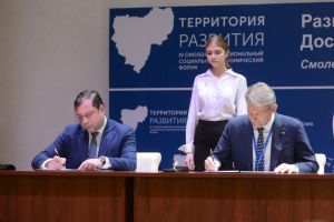 В рамках IV Смоленского регионального социально-экономического форума «Территория развития» Губернатор Алексей Островский и генеральный директор фирмы «Техноавиа» Андрей Попов подписали Соглашение о строительстве нового цеха швейной фабрики в Починковском районе.