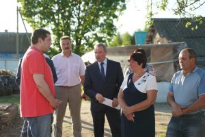 Завершив решение неотложных вопросов, предусмотренных рабочим графиком, глава региона перенес на другое время проведение ряда запланированных встреч и совещаний, не требующих его оперативного вмешательства, и отправился вечером в Екимовичи. Алексей Островский посетил пожилых супругов Сизинцевых. Пожар в доме Ирины Алексеевны и Сергея Петровича произошел 18 апреля. От постройки остался один фундамент. Немногочисленные вещи и мебель, спасенные из огня, супруги разместили в парнике на собственном участке, а также под сооруженным навесом.