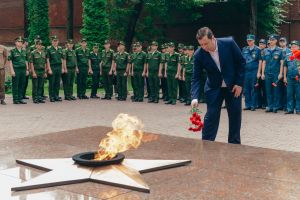В Сквере Памяти Героев собрались представители органов исполнительной и законодательной власти, силовых ведомств, духовенства, общественных организаций, молодежных и ветеранских объединений, чтобы почтить память советских граждан, погибших на полях сражений, замученных в концлагерях, умерших в тылу от голода и лишений, а также поблагодарить ветеранов за мирное небо над головой.