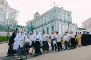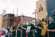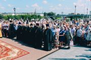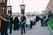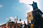 По окончании торжественной службы состоялся крестный ход на Владимирскую набережную, где у памятника святому князю Владимиру был совершен молебен Крестителю Руси. В завершение молебна глава региона Алексей Островский обратился к собравшимся со словами приветствия.