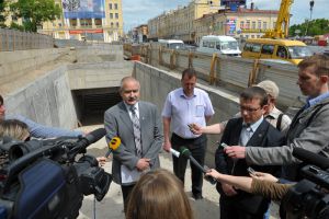 Когда автомобильное движение на одном из самых оживленных участков дорожной сети в центре города Смоленска нормализуется, а площадь Смирнова можно будет перейти по подземному переходу? Об этом журналистам на брифинге, устроенном прямо на стройплощадке, рассказали директор Управления капитального строительства Смоленской области Михаил Захаров и директор организации – генподрядчика ООО «Смоленская Строительная Компания» Александр Мизгулин.