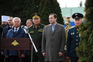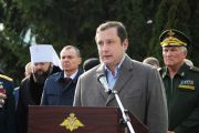Губернатор Алексей Островский и командир 29-й отдельной железнодорожной Варшавской орденов Кутузова 2-й степени и Красной Звезды бригады Алексей Налейкин в торжественной обстановке открыли памятник воинам-железнодорожникам. Глава региона поприветствовал участников церемонии.