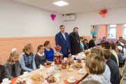 Далее глава региона совместно с Владыкой Исидором за чашкой чая пообщались с семьями, воспитывающими приемных детей.