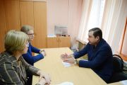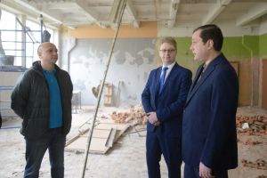 Далее глава региона пообщался с руководителем подрядной организации, осуществляющей ремонт помещений.