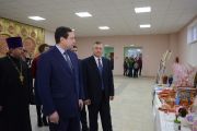 Перед началом торжественного мероприятия глава региона ознакомился с выставкой, на которой были представлены изделия декоративно-прикладного творчества, созданные учащимися местного отделения детской Школы искусств, а также работы мастеров учреждений культуры Шаталовского и Стодолищенского сельских поселений.