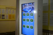 Ирина Новикова: Как Вы видите, Алексей Владимирович, на электронном табло представлено меню нашей столовой. Ученик может выбрать любое из представленных блюд – салат, горячее, выпечку, чай – и сразу оплатить его с помощью карты [на экране высвечивается Личный кабинет ученика с информацией об остатке денежных средств на его лицевом счете]. Автомат выдает ребенку чек, с которым он подходит к буфетчице и получает свой заказ. Мы установили здесь три таких терминала, в результате значительно сократились очереди, буфет работает быстрее, детям удобнее выбрать, какое из блюд они хотели бы на обед. Информация о питании также поступает родителям на телефон или по электронной почте. <…>. Помимо этого, в холле установлено электронное интерактивное табло с расписанием уроков и указанием кабинетов, графиком работы учителей. Также мы внедряем систему электронных дневников. И дети, и родители очень довольны всеми нововведениями. Спасибо Вам, Алексей Владимирович, за реализацию этих проектов на базе нашей школы.