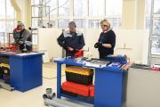 Далее глава региона осмотрел мастерскую «Сантехника и отопление», оснащенную инструментами для создания стальной конструкции подвесной сантехнической системы (является одним из базовых требований владения профессиональными навыками по данной компетенции), а также высокотехнологичным оборудованием для монтажа и пайки труб.