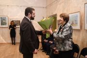 После церемонии вручения юбилейных наград Алексей Островский пообщался с участниками мероприятия в формате чаепития. Во время беседы слово взяла председатель Смоленской региональной организации бывших малолетних узников фашистских концлагерей Зоя Кумерданк.