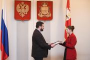 В продолжение торжественного мероприятия глава региона вручил лауреатам конкурса дипломы о присуждении молодежной премии Администрации Смоленской области.