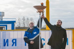 В завершение церемонии Алексей Островский и Михаил Синицын зажгли факел, символизирующий запуск природного газа в селе Туманово.