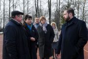 Алексей Островский: Площадка скромная, конечно, но для детей все равно безусловная радость будет от такой площадки, от игрового поля, от футбольного, от баскетбольного. Это все, конечно, безусловный плюс с точки зрения развития детей, их здоровья и благополучия. Я Вас вызвал сюда, Вита Михайловна [Хомутова, начальник Департамента по образованию и науке], не случайно, понимая, что у Вас, как и у меня, выходной день. Значит, у меня была информация, сейчас я вижу, что она даже визуально подтверждается – что школа находится в достаточно плачевном состоянии. Поэтому давайте сейчас поговорим с Вами, с главой [района Инной Демидовой], с директором учреждения [Владимиром Макаренковым], какие здесь есть проблемы и как мы их будем решать – путем какого объема денежных средств, возможно, в этом году, а возможно большую часть придется запланировать на следующий. Вы, наверное, как человек, который здесь работает на земле, в учреждении, лучше всего знаете проблематику. Если можно, расскажите, пожалуйста.