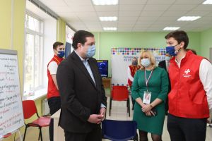 Анастасия Гапеева, заместитель начальника Главного управления по делам молодежи и гражданско-патриотическому воспитанию: Алексей Владимирович, благодаря поддержке Администрации области в рамках национального проекта «Образование» в прошлом году был открыт Региональный ресурсный центр по поддержке добровольчества. С 20 марта здесь работает волонтерский штаб помощи пожилым людям. В настоящее время к данному проекту уже присоединились порядка 300 волонтеров. БОльшая часть обращений, поступающих от пожилых людей, касается приобретения продуктов питания, товаров первой необходимости и, конечно, лекарств. Подчеркну, что большое внимание уделяется мерам безопасности и профилактики коронавирусной инфекции. Перед тем, как приступить к работе, все добровольцы проходят термометрию — волонтерам с температурой тела выше 37 градусов запрещено находиться в штабе и выездных группах.