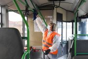 Андрей Борисов: С учетом времени действия антибактериальных средств уборка и полная дезинфекция салона проводится 3 раза в день - перед выходом автобуса на линию, в обеденное время водителей и после рабочей смены.
