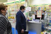 В завершение рабочей поездки Губернатор проинспектировал наличие жизненно необходимых и важнейших лекарственных препаратов в аптечном пункте «Смоленск-Фармация» (пл. Колхозная, д. 6).