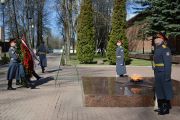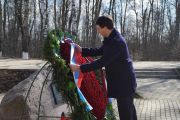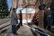 Далее Игорь Щеголев и Алексей Островский отправились в Сквер Памяти Героев, где почтили память павших защитников Родины, возложив венки и цветы к Вечному Огню и бюсту Героя Советского Союза Михаила Егорова, водрузившего Знамя Победы над поверженным Рейхстагом.