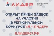 Продолжается прием заявок на участие во втором региональном конкурсе «Я – лидер», организованном по инициативе Губернатора Алексея Островского в рамках реализации проекта «Смоленская область – регион больших возможностей».
