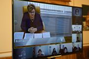 Еще одним вопросом повестки стала работа организаций социального обслуживания и образования с круглосуточным режимом пребывания граждан в условиях режима повышенной готовности, который был введен в соответствии с Указом Губернатора. С докладом выступила заместитель Губернатора Вита Хомутова.