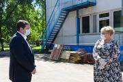 Далее глава региона побывал в детском саду «Дюймовочка», который посещают 206 воспитанников в возрасте от 1,5 до 8 лет (всего открыто 10 групп). В нынешнем году здесь также проводятся работы по ремонту фасада и обновлению кровли здания – на эти цели из областного бюджета направлено порядка 14,6 млн рублей. Подрядная организация, определенная по итогам конкурсных процедур, приступила к ремонту 20 мая, на данный момент работы ведутся в соответствии с установленным графиком.