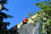 Андрей Шубин, глава города Десногорска: Алексей Владимирович, на данном объекте уже заменены двери, выполнен ремонт кровли и завершаются работы по ее монтажу. Параллельно производится замена окон, ремонт крыльца, а также устройство вентилируемого фасада [система отделки внешних стен зданий, состоящая из монтируемых на каркас отделочных материалов]. Отмечу, что работы ведутся и в будни, и в выходные дни. Срок завершения работ – 25 августа.