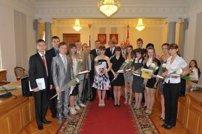 Руководители области поздравили золотых медалистов – выпускников смоленских школ – с победой, вручив заслуженные награды.