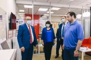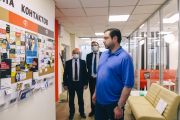 Во время посещения Центра «Мой бизнес» Губернатор осмотрел зону отдыха для посетителей, офисные помещения, предназначенные для сотрудников, которые предоставляют услуги по сертификации продукции, регистрации товарных знаков, осуществляют поддержку в сфере туризма (разработка брендбука и фирменного стиля, проведение классификации гостиниц), а также Стену контактов и пр.