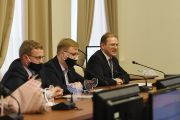 В продолжение мероприятия глава региона пообщался с лауреатами областного конкурса, которые задавали Губернатору вопросы из различных областей - например, поднимались такие темы, как ремонт спортивных учреждений в районах области, развитие государственно-частного партнерства, реализация инициатив в сфере обращения с отходами и пр.