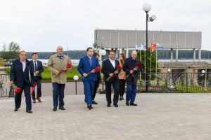 В начале рабочей поездки Алексей Островский совместно с директором департамента по взаимодействию с регионами Госкорпорации «Росатом» Андреем Полосиным, директором Смоленской атомной станции Павлом Лубенским и руководителем департамента по работе с регионами и органами государственной власти АО «Концерн Росэнергоатом» Светланой Чуриловой побывали на мемориальном комплексе «Курган Славы», где возложили цветы к Вечному огню и почтили память павших защитников Родины.