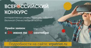 Продолжается прием заявок на Всероссийский конкурс интерактивных реконструкций событий Великой Отечественной войны, организованный Агентством инновационного развития при поддержке Федерального агентства по делам молодежи и Роспатриотцентром в рамках субсидии федерального бюджета, предоставленной на проведение мероприятий по содействию патриотическому воспитанию граждан.