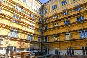 Алексей Островский: Роман Сергеевич [Козлов, ректор Смоленского государственного медицинского университета Министерства здравоохранения Российской Федерации], в ходе нашей встречи с Министром здравоохранения Михаилом Альбертовичем Мурашко были достигнуты договоренности, касающиеся, в частности, участия возглавляемого Вами вуза в федеральной адресной инвестиционной программе, на основании которой СГМУ в течение ближайших четырех лет получит более 800 млн рублей на строительство нового студенческого общежития, ремонт учебных аудиторий и иные направления деятельности. Какие еще работы проводятся сейчас в рамках программы капитального ремонта зданий? Вижу, что идет ремонт фасада. Есть ли отставание от графика?