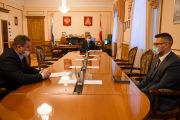 Глава региона Алексей Островский провел рабочую встречу с новоизбранным главой Сафоновского района Александром Лапиковым, в ходе которой стороны рассмотрели первоочередные вопросы, связанные с дальнейшим социально-экономическим развитием муниципального образования.