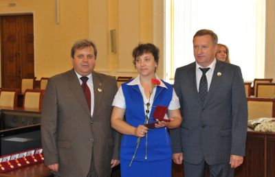 Знаки материнской доблести в торжественной обстановке в Большом зале областной Администрации вручили заместитель Губернатора Сергей Кривко и председатель областной Думы Анатолий Мишнев.
