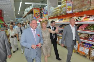 В церемонии открытия принял участие Губернатор Сергей Антуфьев. «Осенью 2009 года ко мне приехал Николай Николаевич Грешилов, - сказал глава региона, - и предложил построить в Смоленске современный гипермаркет. Мы подписали соглашение, и сегодня уже стали свидетелями реализации инвестиционного проекта, который стоит 600 миллионов рублей». Благодаря данному проекту будут пополняться бюджеты всех уровней, но самое главное, по словам Губернатора, что создано 700 рабочих мест для смолян. «Получается, что за три дня в нашем регионе появилось более 1 000 рабочих мест, - поделился с журналистами Сергей Антуфьев. – Буквально позавчера мы открыли новый офис МТС, создавший около 500 рабочих мест, а сегодня современный гипермаркет».