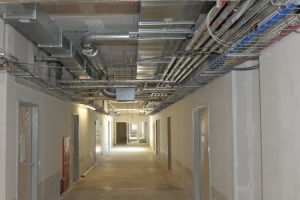 В основном корпусе проведен монтаж блоков, идет стыковка инженерных систем. К сентябрю строители готовятся к наиболее трудоемкому и важному этапу: завозу и установке медицинского оборудования.