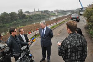Журналисты центральных и региональных средств массовой информации посетили стройплощадку одного из самых масштабных объектов – 1150, расположенную на берегу реки Днепр. В соответствии с правительственным планом по подготовке к юбилею Смоленска здесь проводится реконструкция набережной с укреплением берегового откоса, а также будет построен пешеходный мост через реку.