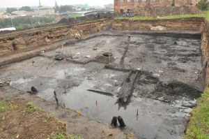 Одновременно со стройкой на обозначенном учеными участке работает смоленская археологическая экспедиция института археологии Российской Академии Наук. «Сейчас мы находимся на уровне первой половины XVIII века, он обозначен находками монет, печных изразцов, довольно много керамики, - прокомментировал ход раскопок научный сотрудник экспедиции Валентин Соболь. – «Из металлических изделий обычные бытовые вещи: ножи, вилки, перстни, серьги, в том числе, столовые двузубые. Нам удастся хорошо проследить обувь, которую носило простое населения Смоленска – найдено большое количество остатков туфлей, сапог. Основные исследования у нас впереди. Мы надеемся, что здесь будут и остатки деревянной застройки города ранних веков. Предстоит исследовать еще минимум 4-5 метров культурного слоя – вплоть до начала XII века».
