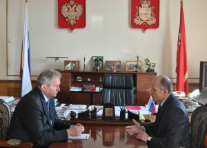 В Администрации области состоялась рабочая встреча Губернатора Сергея Антуфьева с исполняющим обязанности Главы администрации города Смоленска Сергеем Маслаковым. На ней обсуждались вопросы жизнедеятельности областного центра.