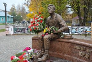 Бронзовая скульптура Народного артиста СССР, присевшего отдохнуть на манеже цирковой арены, со словами «Великий актер и клоун Юрий Никулин» открыта 8 октября в Демидове.