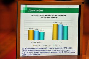 О предварительных итогах социально-экономического развития Смоленской области в 2011 году участников совещания проинформировал первый заместитель начальника Департамента экономического развития, инвестиций и внешнеэкономической деятельности Виктор Кожевников. Развитие экономики региона в этом году характеризуется положительной динамикой производства продукции в обрабатывающей промышленности, в сельском хозяйстве. По сравнению с прошлогодним уровнем выросли инвестиции. Улучшилась ситуация на рынке труда. Повысился уровень жизни населения области, что способствовало улучшению ситуации на потребительском рынке товаров и услуг. Ожидается, что индекс промышленного производства в целом составит 104%, продукции сельского хозяйства – 108,5%. Индекс объема инвестиций в основной капитал оценивается с ростом на 3%. Коэффициент рождаемости увеличится, уровень смертности снизится, темпы снижения численности населения Смоленской области замедлятся.
