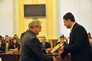 После напутствия участникам Съезда Сергей Антуфьев наградил победителей III областного конкурса «Лидер года-2011». Пятеро самых активных молодых людей региона получили дипломы и ценные подарки: