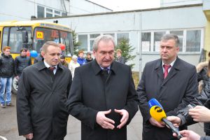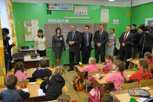 В школе созданы все условия для всестороннего развития и воспитания учащихся. Здесь работают высококвалифицированные педагоги. Губернатор посмотрел, с каким воодушевлением здесь проходят уроки и торжественно вручил руководству школы документы на новый школьный автобус, напичканный самым современным оборудованием, делающим этот автомобиль максимально безопасным, в том числе системой ГЛОНАСС, отслеживающей маршрут движения автобуса.