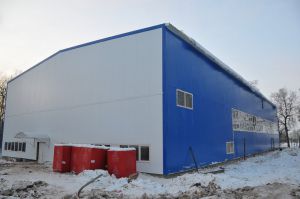 Спортивный комплекс представляет собой двухэтажное здание размером 50х24 м. На первом этаже располагается спортивный зал, мужские и женские раздевалки, душевые, санузлы, кабинет врача, инструкторские и тренерские комнаты, инвентарная, запланирована трибуна для зрителей. Предусмотрена отдельная котельная.