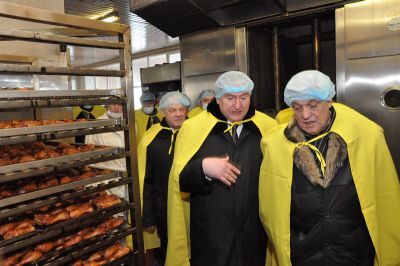 В сопровождении председателя Минского облисполкома Бориса Батуры глава региона прошел по цехам и ознакомился с процессами производства продукции. На предприятии создан замкнутый цикл производства мяса птицы: от получения собственного инкубационного яйца до реализации готовой продукции в своей торговой сети. Оно имеет 14 500 га сельхозугодий, что позволяет укрепить собственную кормовую базу, уменьшив себестоимость мяса птицы.