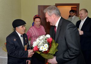 В канун 23 февраля Губернатор Сергей Антуфьев вручил ветерану Великой Отечественной войны Ивану Сергеевичу Куфтенко ключ от новой квартиры и свидетельство о государственной регистрации права собственности.