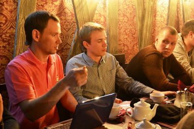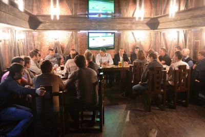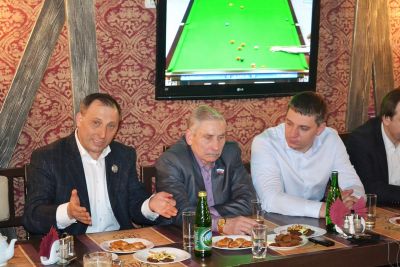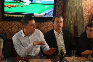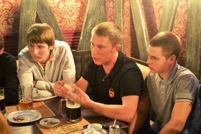 Для неформального общения с неравнодушными к судьбе смоленского спорта ребятами в паб «Сытый генерал» пришли депутат Смоленской областной Думы, вице-президент ФК «Днепр» Лев Платонов, и.о. начальника Департамента спорта, туризма и молодежной политики Смоленской области Эдуард Заенчковский, член правления ФК «Днепр», ректор СГАФК СТ Георгий Грец.
