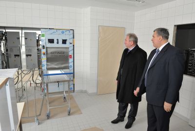 Глава региона ознакомился с функционированием отделения лучевой диагностики, центральным стерилизационным отделением, пищеблоком. На сегодняшний момент выполнено свыше 90% строительно-монтажных работ. Завершается отделка палатных модулей, проходят индивидуальные испытания тепло- и электрокоммуникаций, слаботочных систем и пожарной сигнализации.